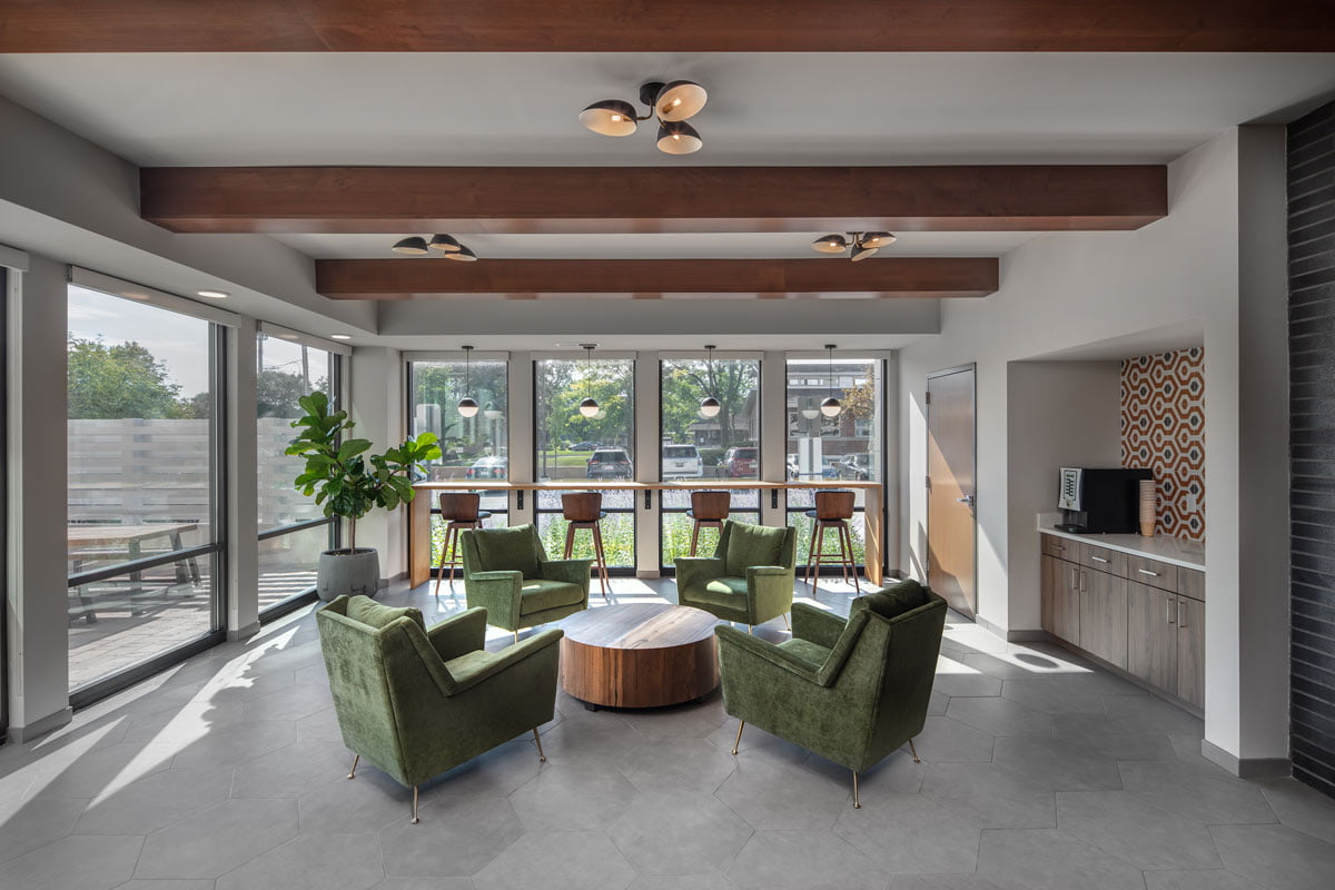 The Urbana Apartments are a trendy 5-story, 79-unit apartment building located in a high-traffic area on Madison’s west side. It features sleek finishes, large indoor and outdoor community spaces, zoom rooms, a coffee bar with a lounge, fitness center and indoor parking.